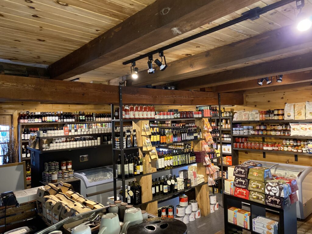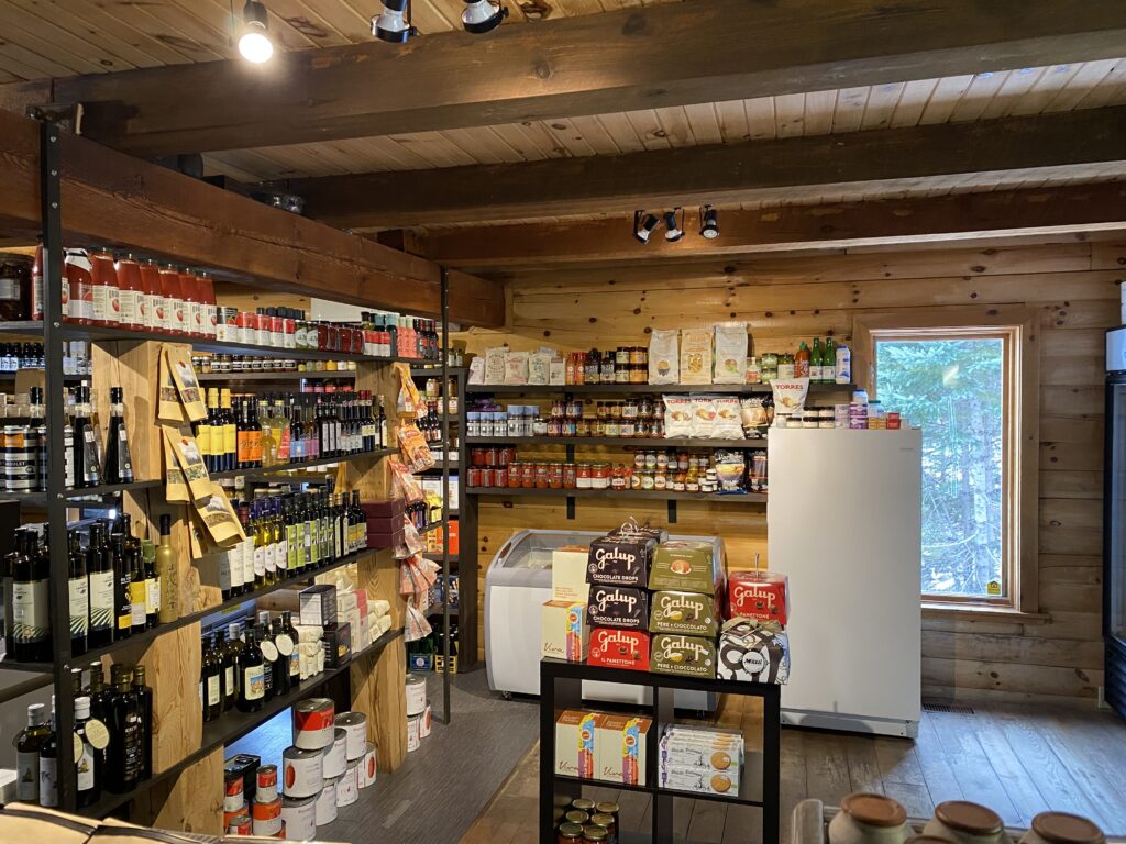 Marinades, confitures de toutes sortes, miel local, pains frais du jour, lait bio et fermier, yogourt de brebis bufflone et vache, œufs bio, beurre, crème glacée bio et autres produits Québécois et importés exceptionnels